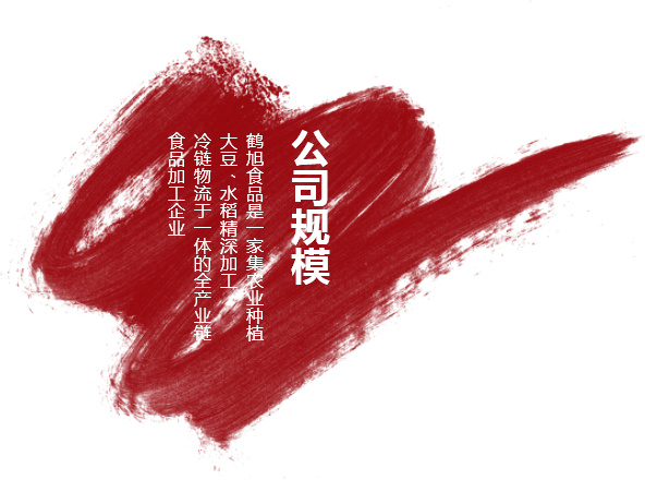 黑龍江鶴旭食品有限公司成立于2013年8月,企業(yè)座落于黑龍江省方正縣經(jīng)濟(jì)開發(fā)區(qū),注冊資金2000萬元。占地面積5萬平方米,總投資2.24億元。該公司以大豆、水稻食品加工產(chǎn)業(yè)為主,以制大豆休閑食品、大豆蛋白粉、非轉(zhuǎn)基因大豆油、大米為核心。是一家集農(nóng)業(yè)種植、大豆、水稻精深加工、冷鏈物流于一體的全產(chǎn)業(yè)鏈?zhǔn)称芳庸て髽I(yè),預(yù)計全部建成后年銷售額6億元,利稅4200萬元...